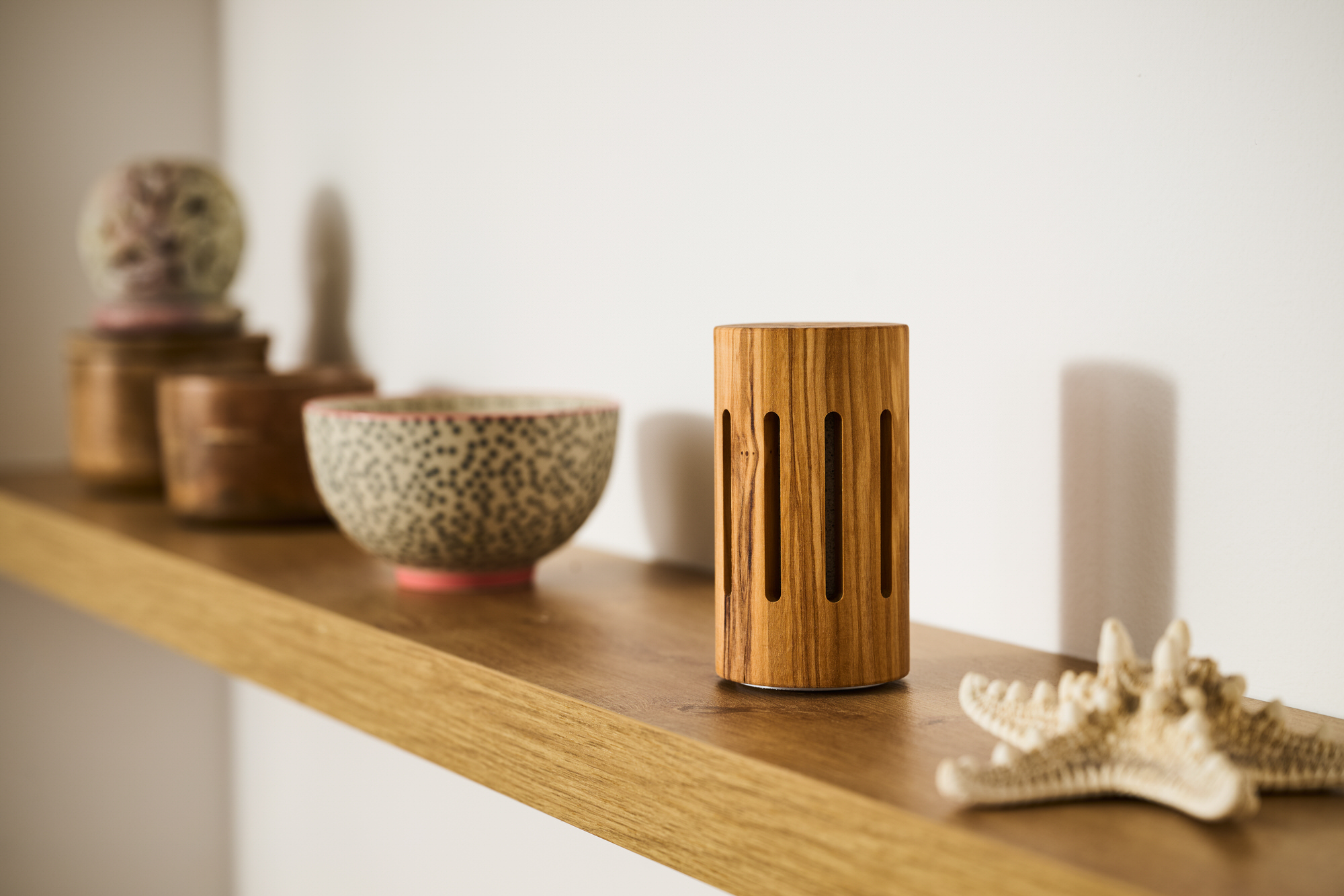 Das hochwertige Olivenholz besticht durch seine einzigartige Maserung und Farbe, die jedem Raum Charakter verleiht. Der Diffusor nutzt die natürliche Porosität des Bimssteins, um ätherische Öle sanft und gleichmäßig zu verteilen. Geben Sie einfach einige Tropfen Ihres Lieblingsöls auf den Bimsstein, und genießen Sie die beruhigenden Düfte, die sich sanft im Raum entfalten.