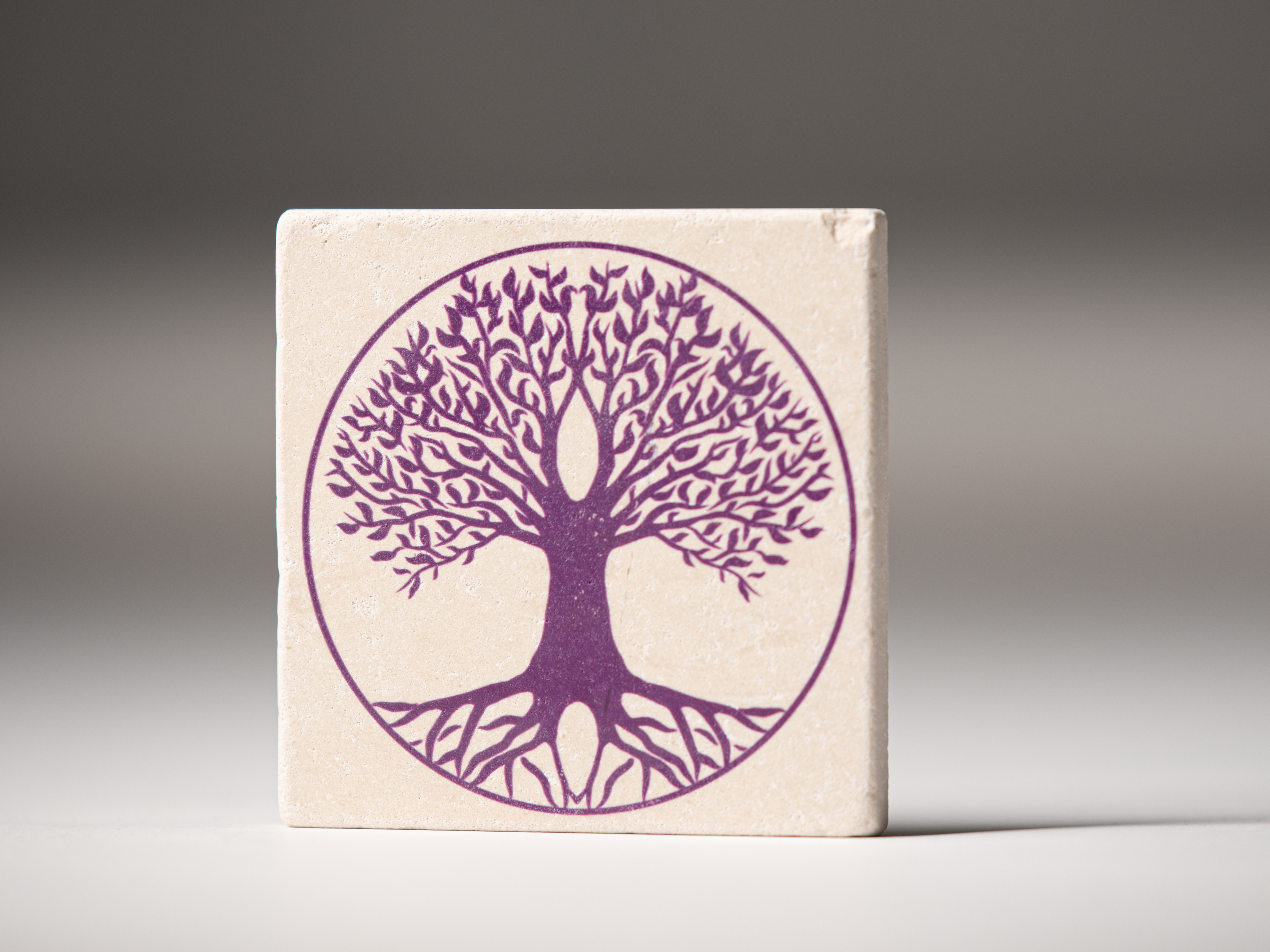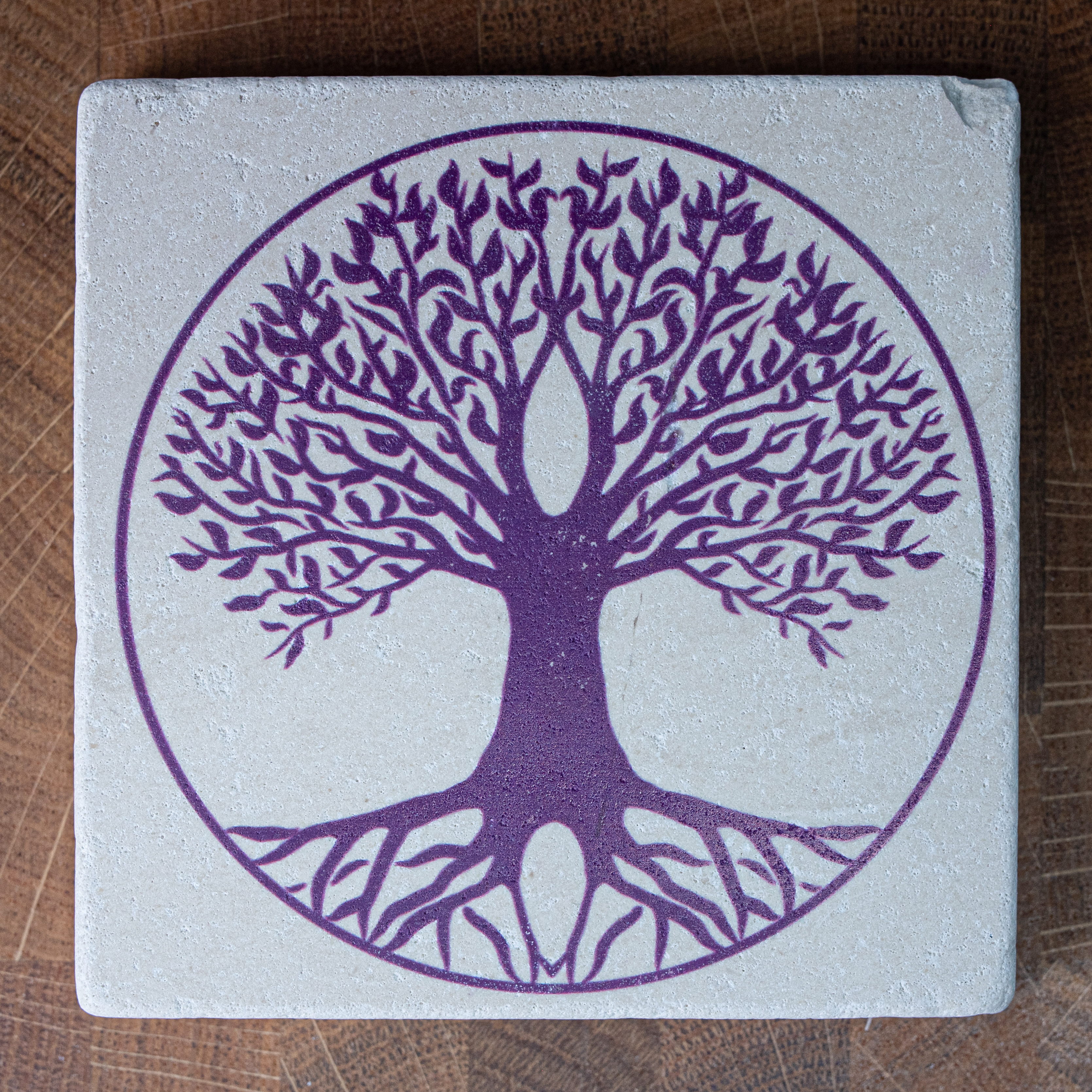 Produktinformationen "Travertin Untersetzer | Lebensbaum violett"