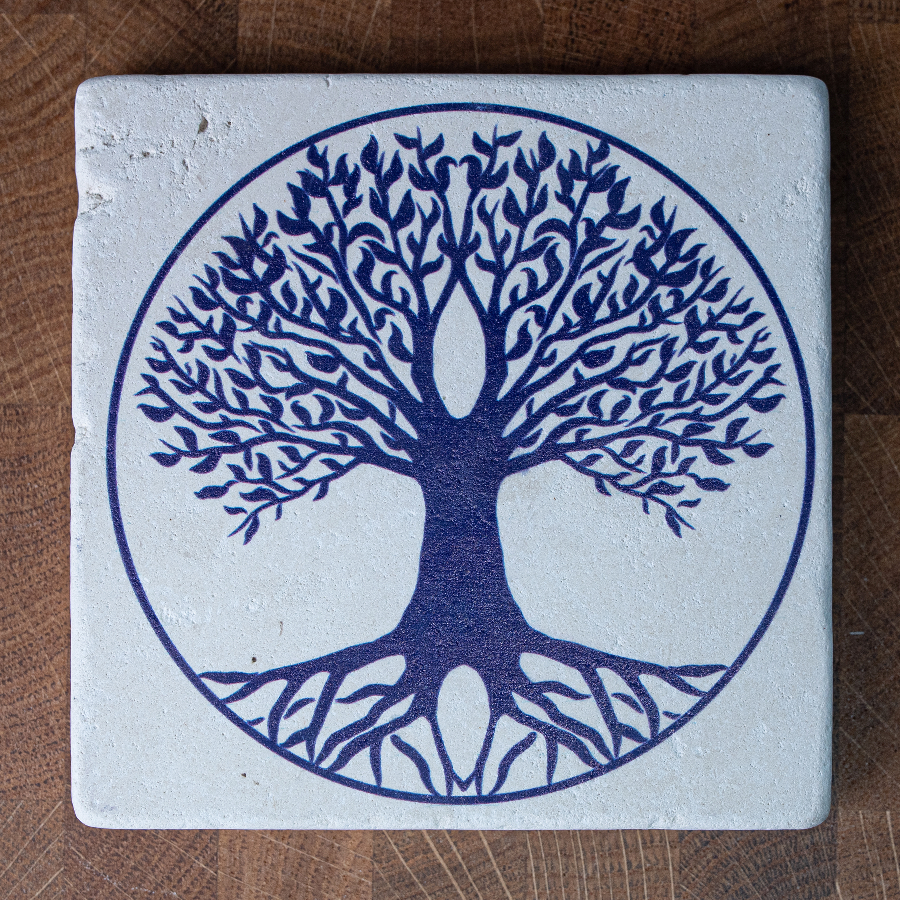Produktinformationen "Travertin Untersetzer | Lebensbaum dunkelblau"