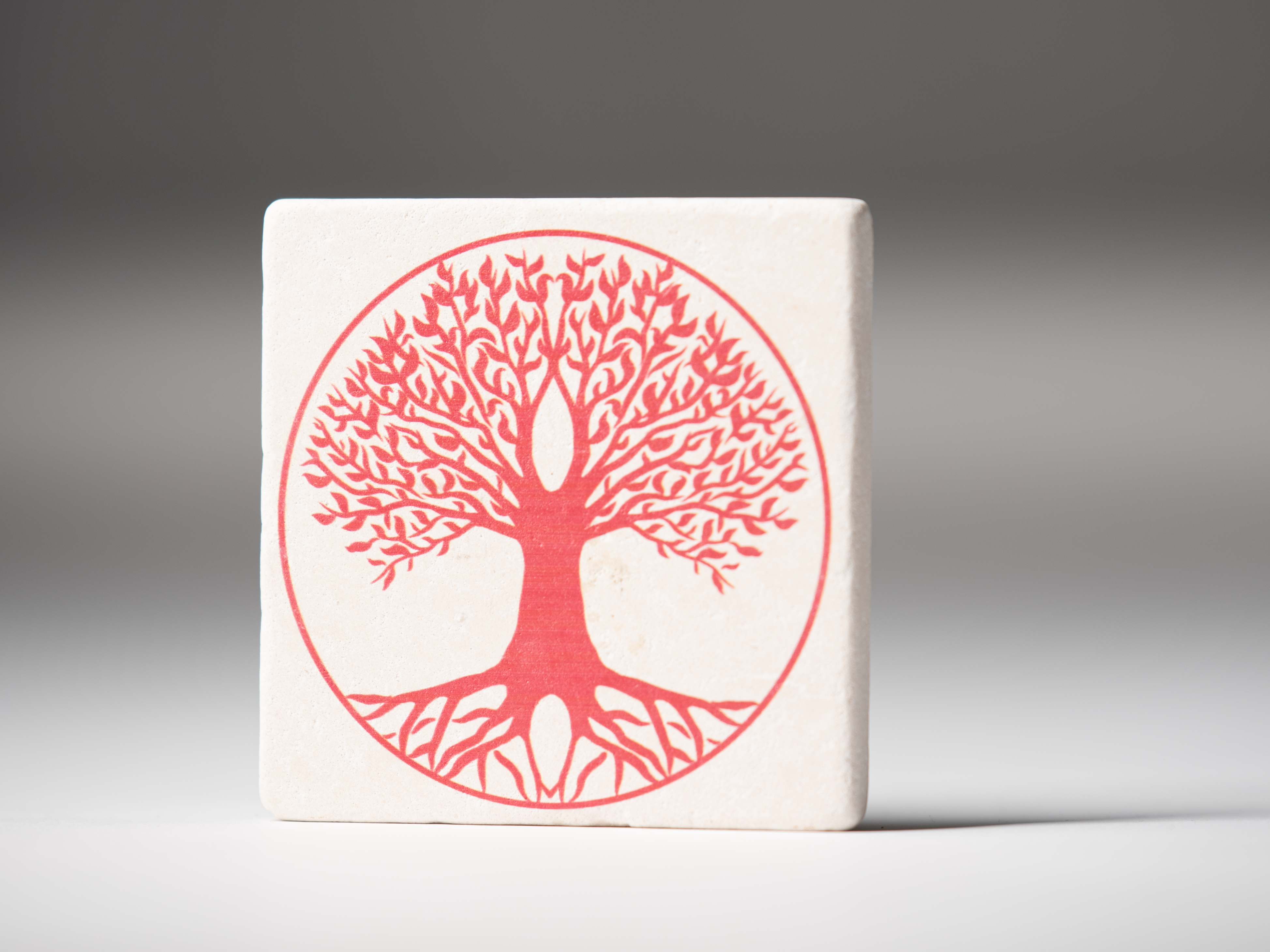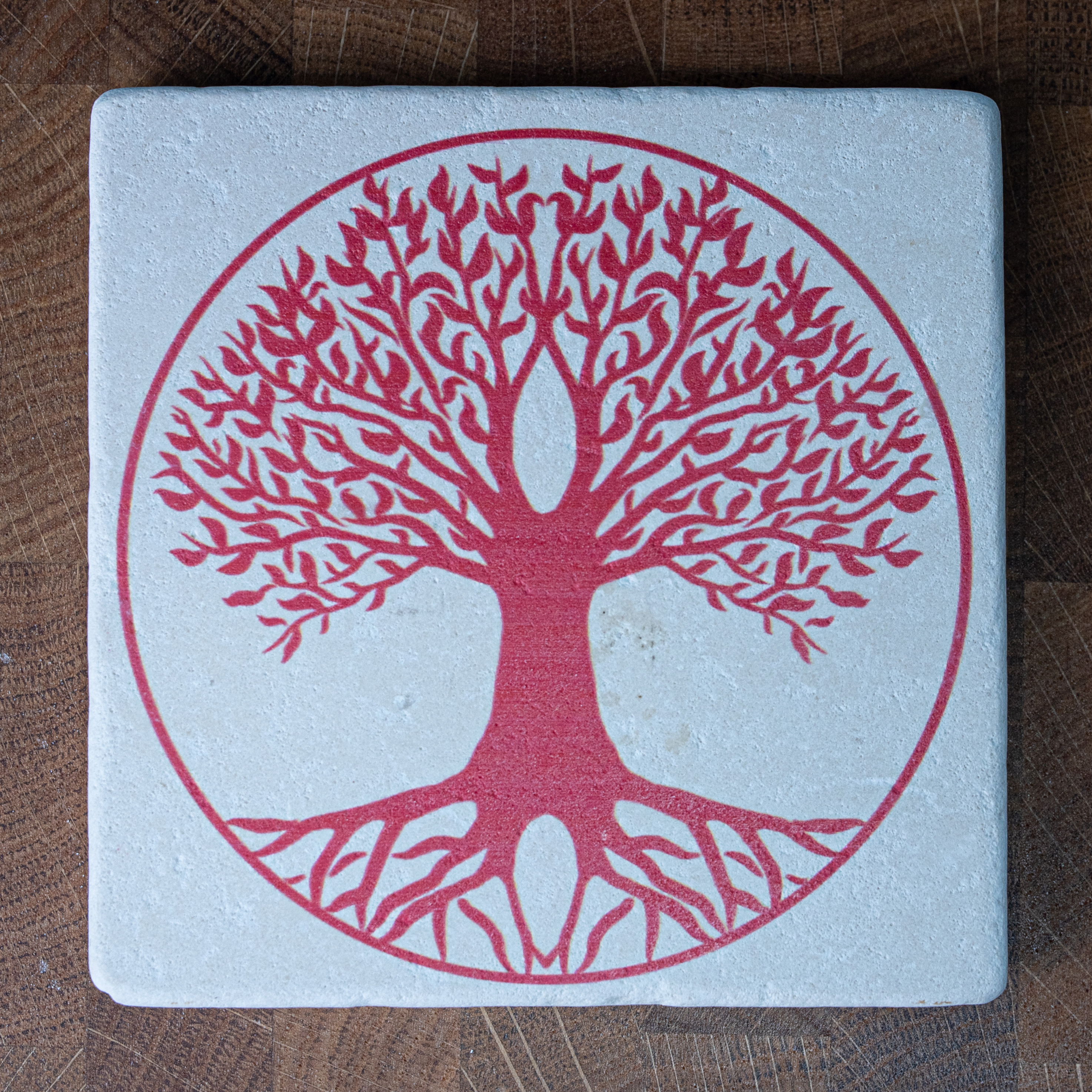 Produktinformationen "Travertin Untersetzer | Lebensbaum rot"