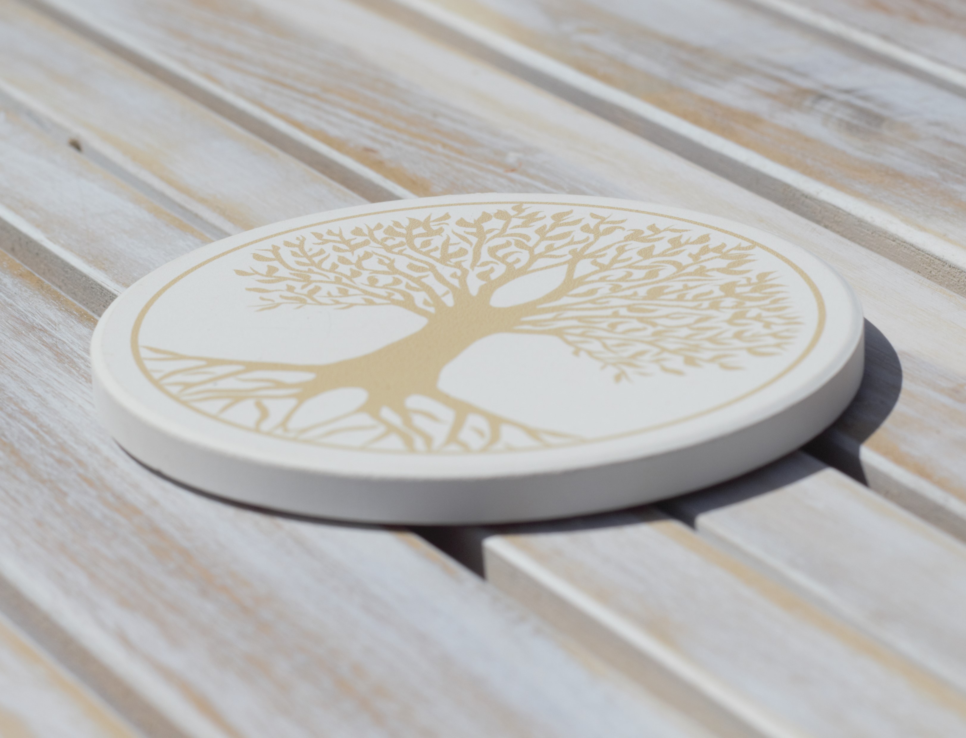 Produktinformationen "Naturstein-Untersetzer Lebensbaum 90 mm Durchmesser"